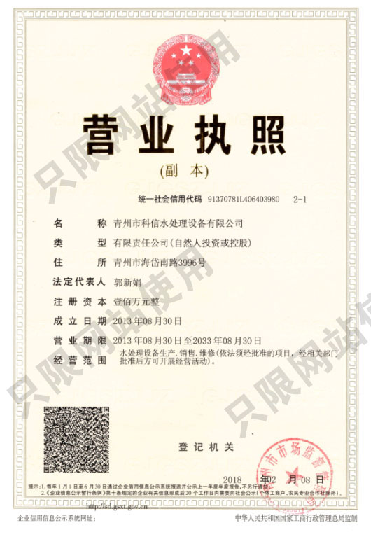 青州市科信水處理設備有限公司是一家專業的青州水處理設備廠家,提供畜牧養殖水處理設備、反滲透純凈水設備、玻璃水生產設備、防凍液生產設備、雙級反滲透設備、IC卡水處理設備、單級反滲透設備、純凈水設備價格、純凈水處理設備、超純水設備等產品,遠銷山東、河北、北京、天津、青州、河南、張家港、內蒙古等地。